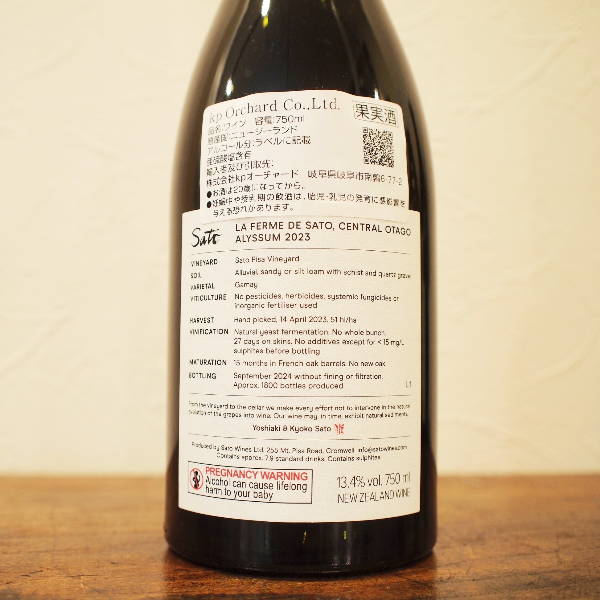 自社畑内で咲き誇るアリッサム(=ニワナズナ)のように奥ゆかしい優美さを讃えるガメイ。ブドウは全て除梗され、8日間の低温浸漬。小さな開放タンクで自然醗酵、バスケットプレスされステンレスでブレンドさせた後古樽にて15ヶ月熟成(MLFあり)。瓶詰めまでに計10ppmの亜硫酸を添加。12ヶ月以上の瓶内熟成。無濾過、清澄剤不使用。