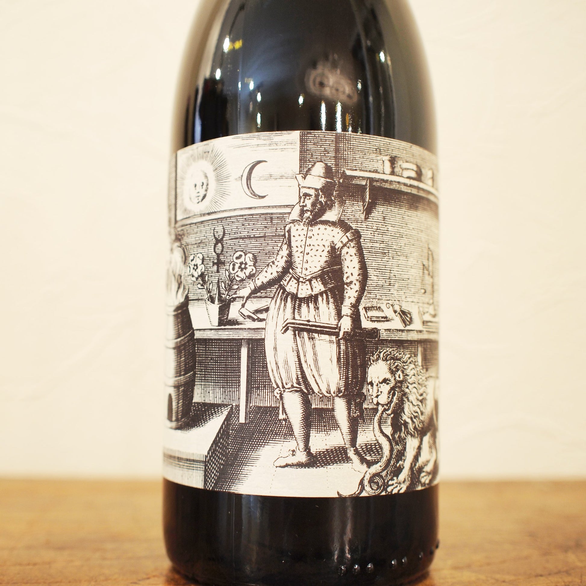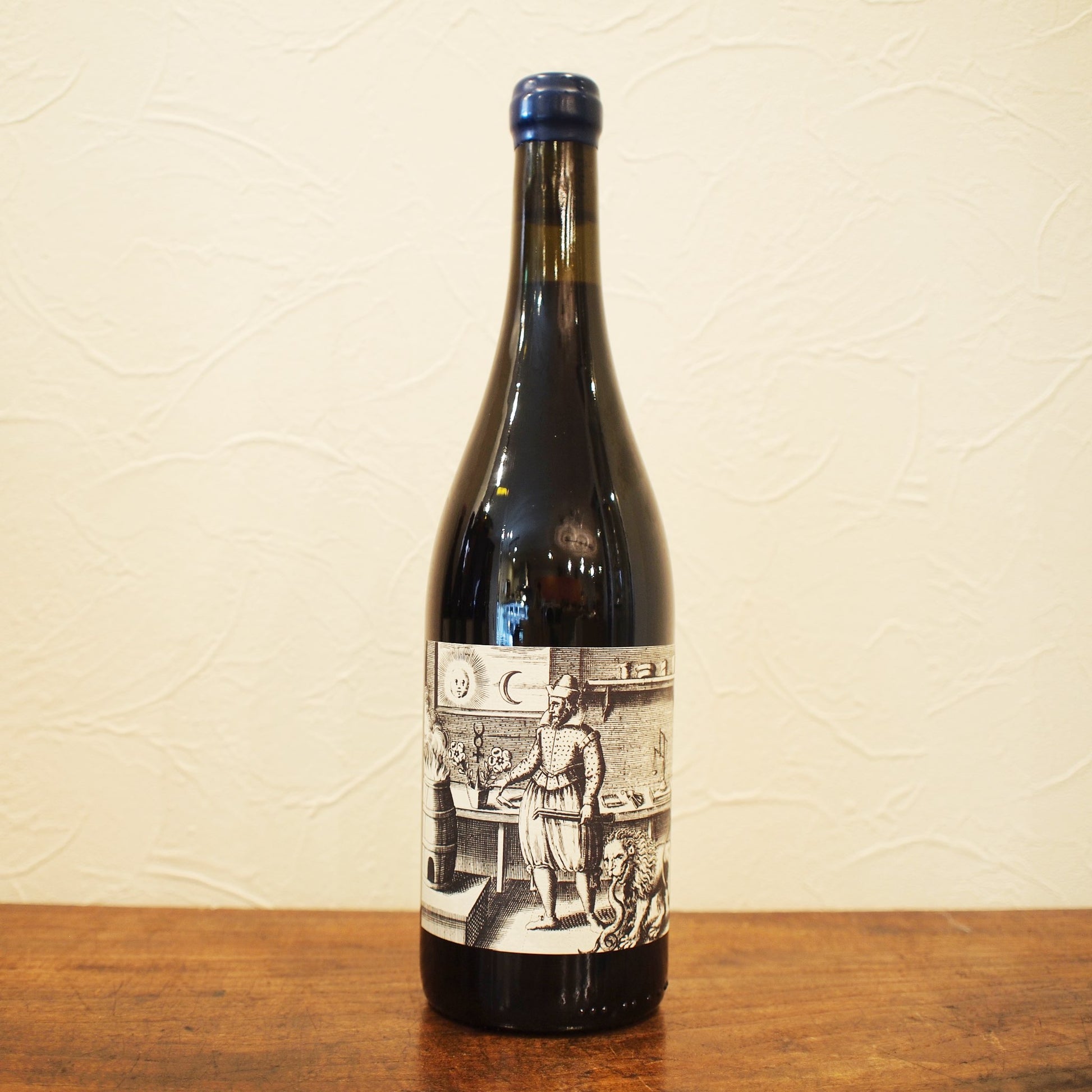 エチケットは、1617年にミヒャエル・マイヤーによって著された錬金術書『アタランタ・フュ ギエンス(Atalanta Fugiens)』から引用しています。本書には象徴的な銅版画、ラテン語の格 言、哲学的な解説文、そして実際に演奏可能な三声のカノンがセットで収められており、五感と 知性を総動員させる構成となっています。 本書で語られる錬金術は、金属を金に変える技術では なく、物質や精神が時間と過程を経て別の存在へと変容していくという思想を表しています。この 「変容」という考え方は、ブドウが発酵を経てワインへと姿を変えていくプロセスに通じるもの です。 さらに本書の重要なポイントは、正解が一つではなく、象徴が読む人によって理性的にも 感覚的にも、あるいは詩的にも異なる解釈を許容する点にあります。これは、ワインの感じ方が 飲み手一人ひとりに委ねられているという考え方と重なるかもしれません。